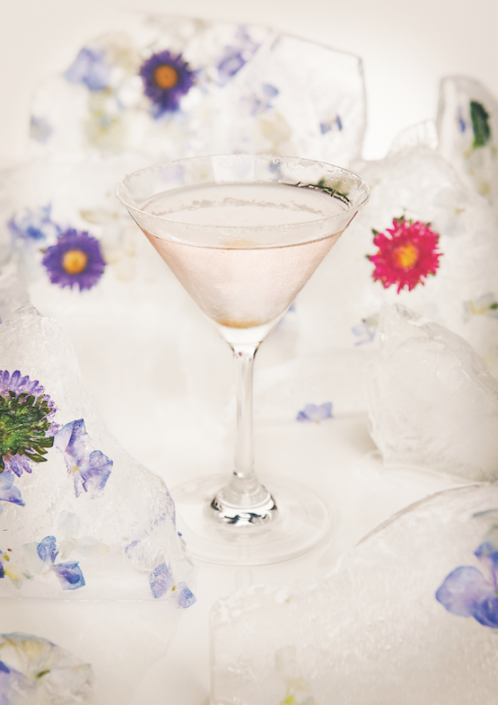 攪拌,以蘸有鹽邊的雞尾酒杯盛放。