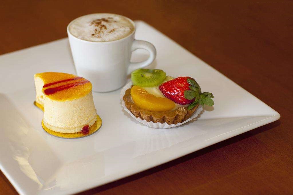 【喝咖啡與用點心】有時飲咖啡可以吃一些點心,但不要一手端著咖啡杯,一手拿著點心,吃一口喝一口地交替進行。飲咖啡時應當放下點心,吃點心時則放下咖啡杯。