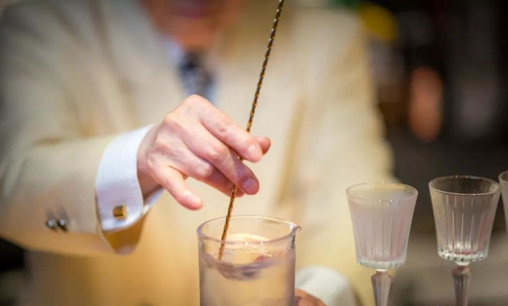 A:這個手法是從東京會館流傳下來的,而我的老師今井先生的Stir手法還稍微有一些不同。要完全熟練掌握這個手法整整花費了20年的時間。Tokyo Kaikan Stir不僅僅看上去很優(yōu)雅安靜,而且在攪拌的時候可以大幅度地減少冰塊與冰塊,冰塊與攪拌杯杯壁之間的碰撞,并且能夠讓冰塊融化時的出水量保持非常低的狀態(tài)。