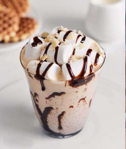 棉花糖、牛奶、咖啡、堅果碎、巧克力醬